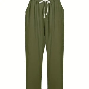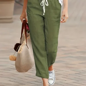 Plus Size With Pockets Women's Travel Pants Cotton Linen Nine Women's Casual Pants Casual Loose Solid Color Lace Up