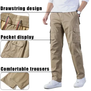 IPPOLICH Men's Retro Casual Pants Outdoor Dreathable Pure Cotton Multi-pocket Work Pants Men Street Travel Shopping Sports Pants