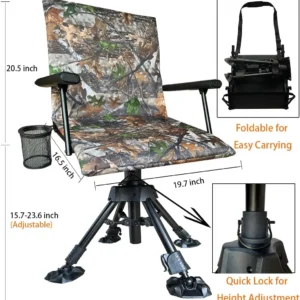Silent Swivel Stable Portable Ground Folding Outdoor Camping Fishing Hunting Blind Chair Seat with Cover,4Legs Adjustable Height