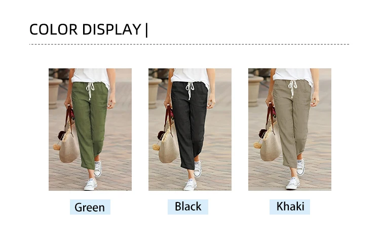 Plus Size With Pockets Women’s Travel Pants Cotton Linen Nine Women’s Casual Pants Casual Loose Solid Color Lace Up